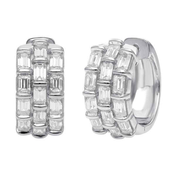 Geometric Diamond Pave Hoop Earrings in White Gold