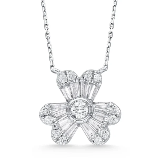 Baguette & Round Diamond Floral Pendant Necklace