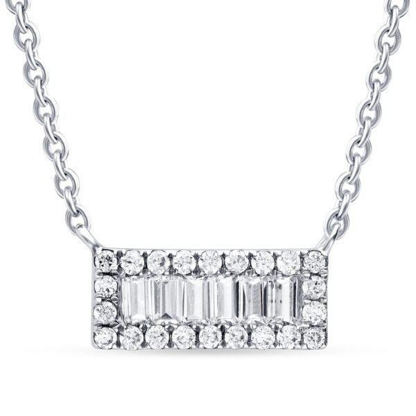 Baguette Diamond Bar Necklace in White Gold