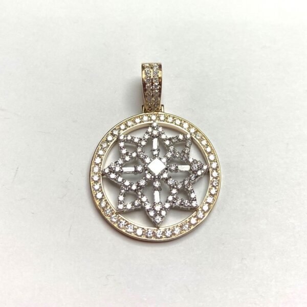 Diamond Baguette & Round Cut Hamsa Hand Pendant in Yellow Gold