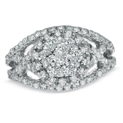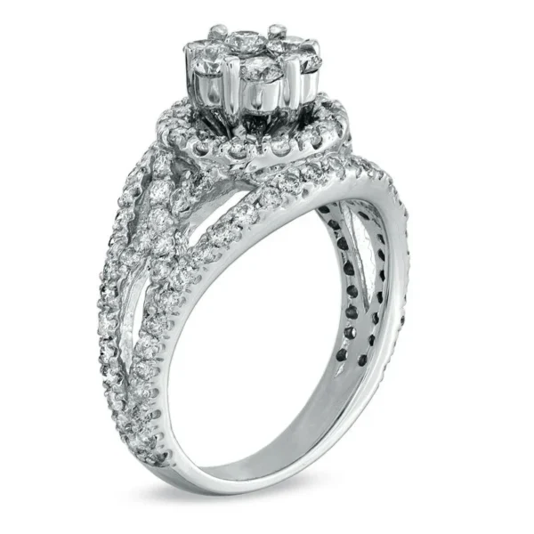 Classic Three-Stone Halo Diamond Engagement Ring in 14K White Gold