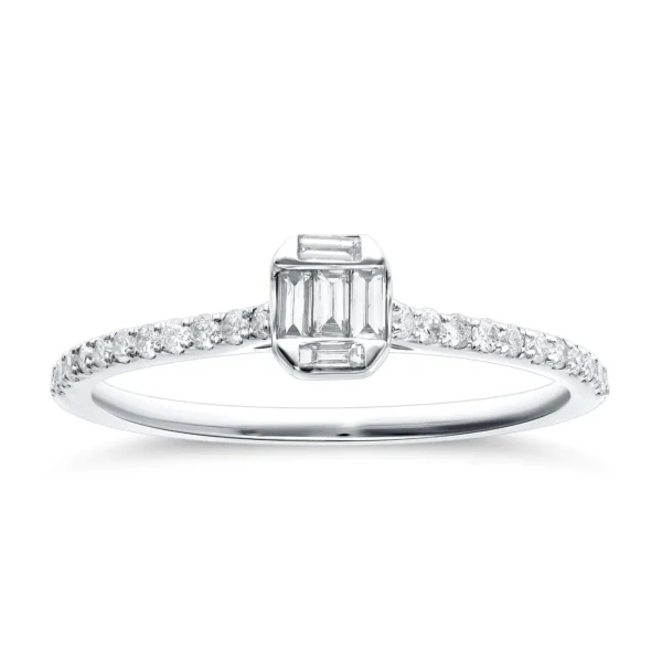 Elegant Baguette Cluster Engagement Ring with Diamond Accents