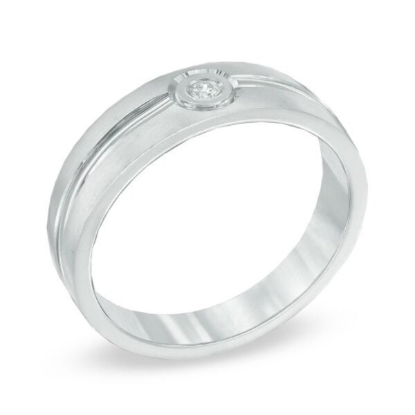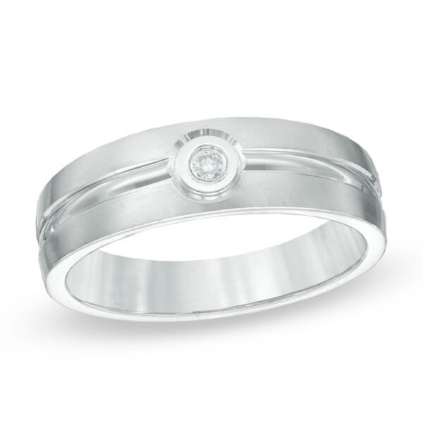 Men’s Classic Diamond Accent Satin Finish Band in White Gold