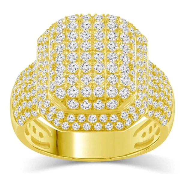 Men’s Iced-Out Rectangular Diamond Ring in 14K Yellow Gold