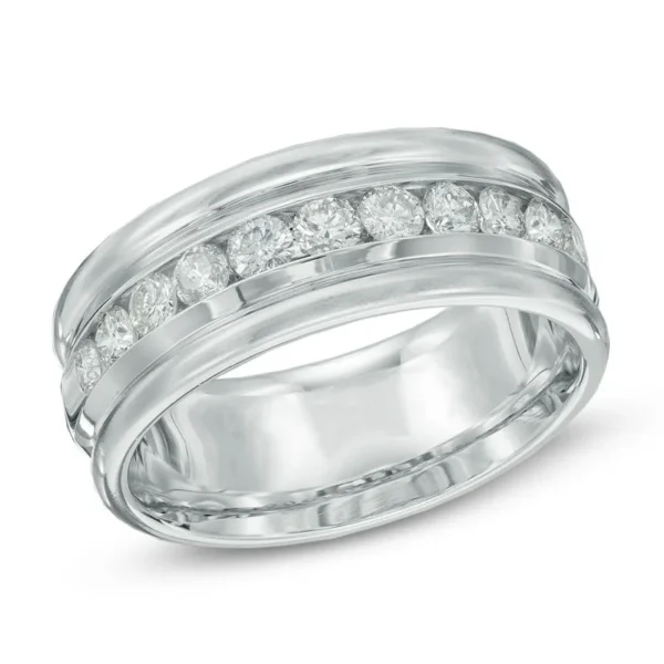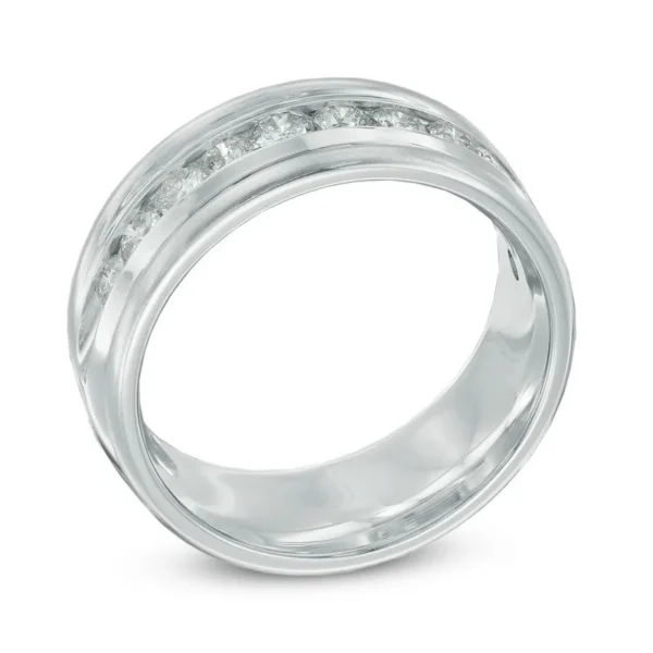 Men’s Channel-Set Diamond Wedding Band in 14K White Gold