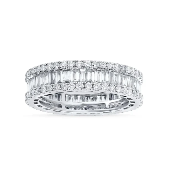 Baguette and Round Diamond Eternity Band in 14K White Gold
