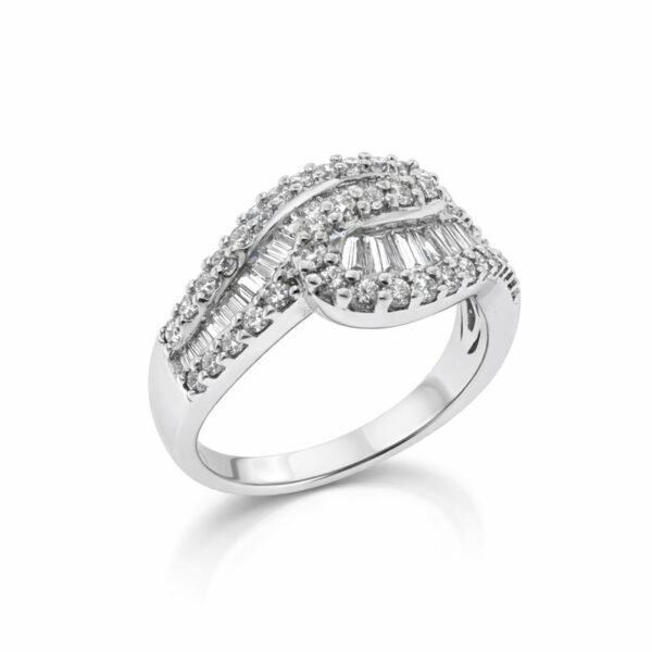 Baguette Diamond Bypass Wrap Ring in White Gold
