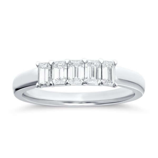 Shared Prong Emerald-Cut Diamond Five-Stone Anniversary Ring