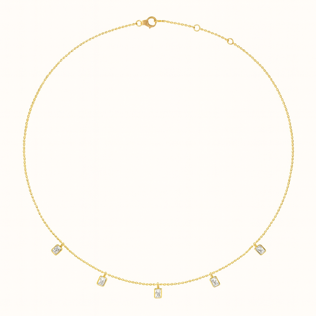 Five-Stone Emerald-Cut Diamond Drop Station Necklace