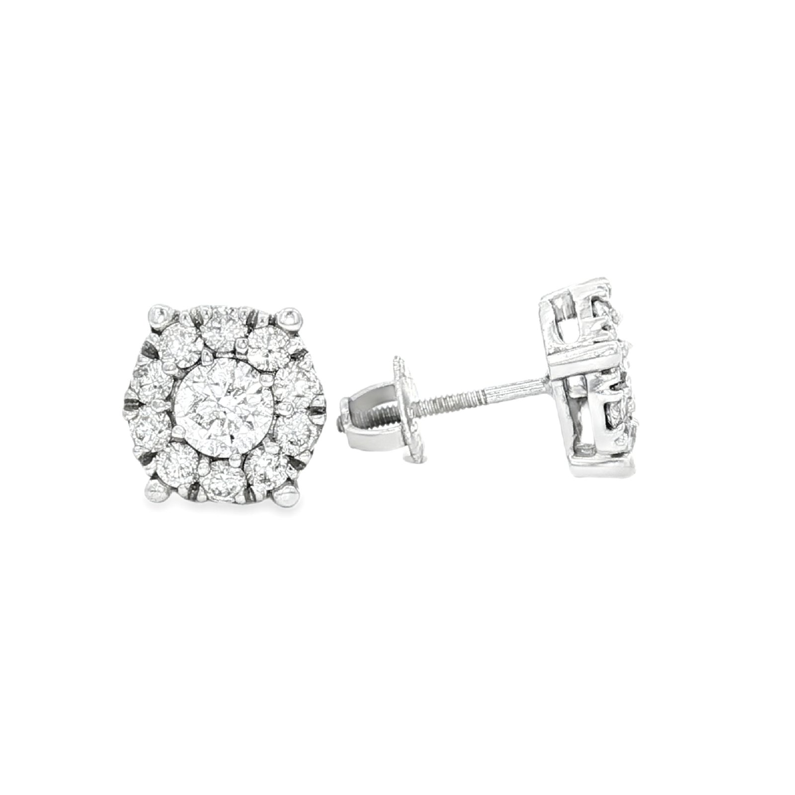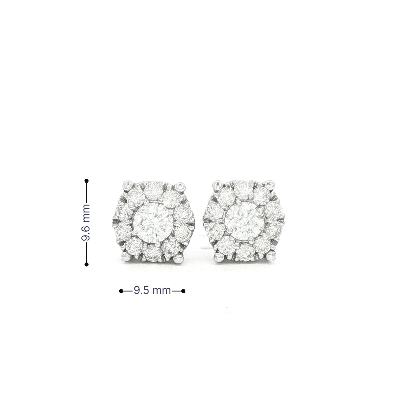 Radiating brilliance from every angle, these diamond cluster halo stud earrings are the perfect blend of timeless elegance and modern sparkle. Each earring features a dazzling round-cut center diamond, encircled by a halo of smaller diamonds that enhance its fire and brilliance. The cluster design creates the illusion of a larger solitaire, making these studs a striking yet versatile choice.