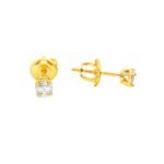 Timeless elegance meets everyday sophistication with these solitaire diamond stud earrings. Each earring showcases a brilliant round-cut diamond, securely nestled in a classic four-prong setting that highlights its sparkle from every angle. Crafted in warm 14K yellow gold, the simple yet refined design allows the diamonds to take center stage, making them a versatile accessory for any occasion. The secure screw-back posts provide added comfort and peace of mind, perfect for daily wear or special celebrations.