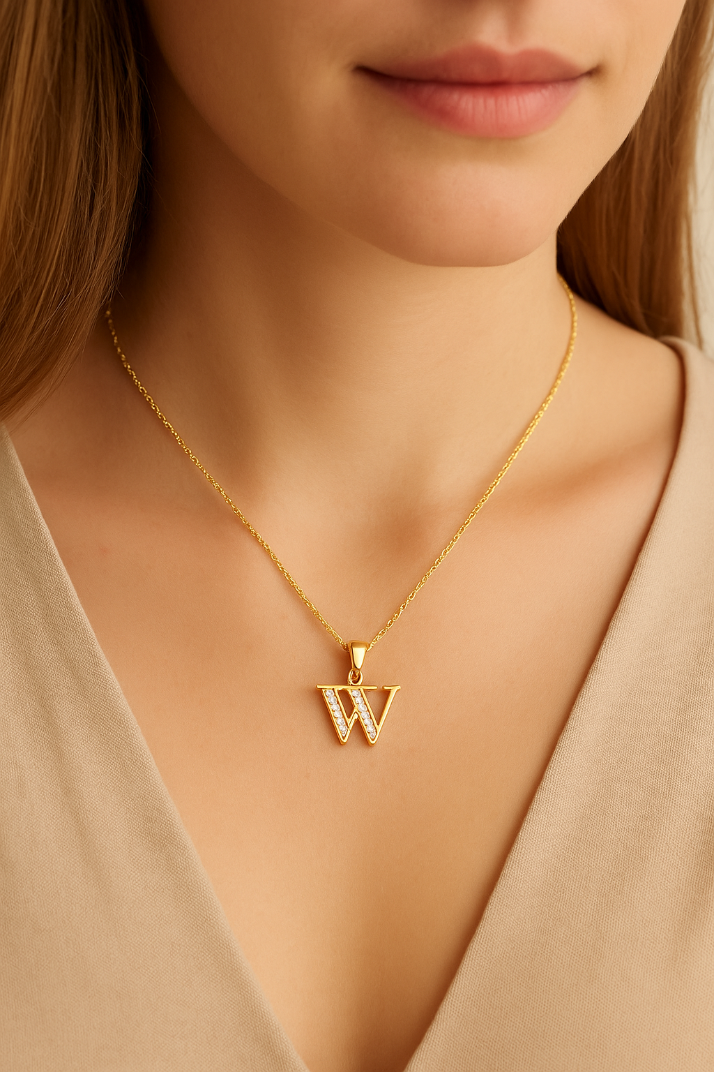 Showcase your style with the Diamond Initial “W” Pendant in Yellow Gold. This striking pendant features the bold letter “W,” beautifully accented with a double row of sparkling round-cut diamonds set along its clean lines. Crafted in radiant yellow gold, it’s the perfect blend of personal charm and timeless elegance, making it ideal for everyday wear or a thoughtful, meaningful gift.