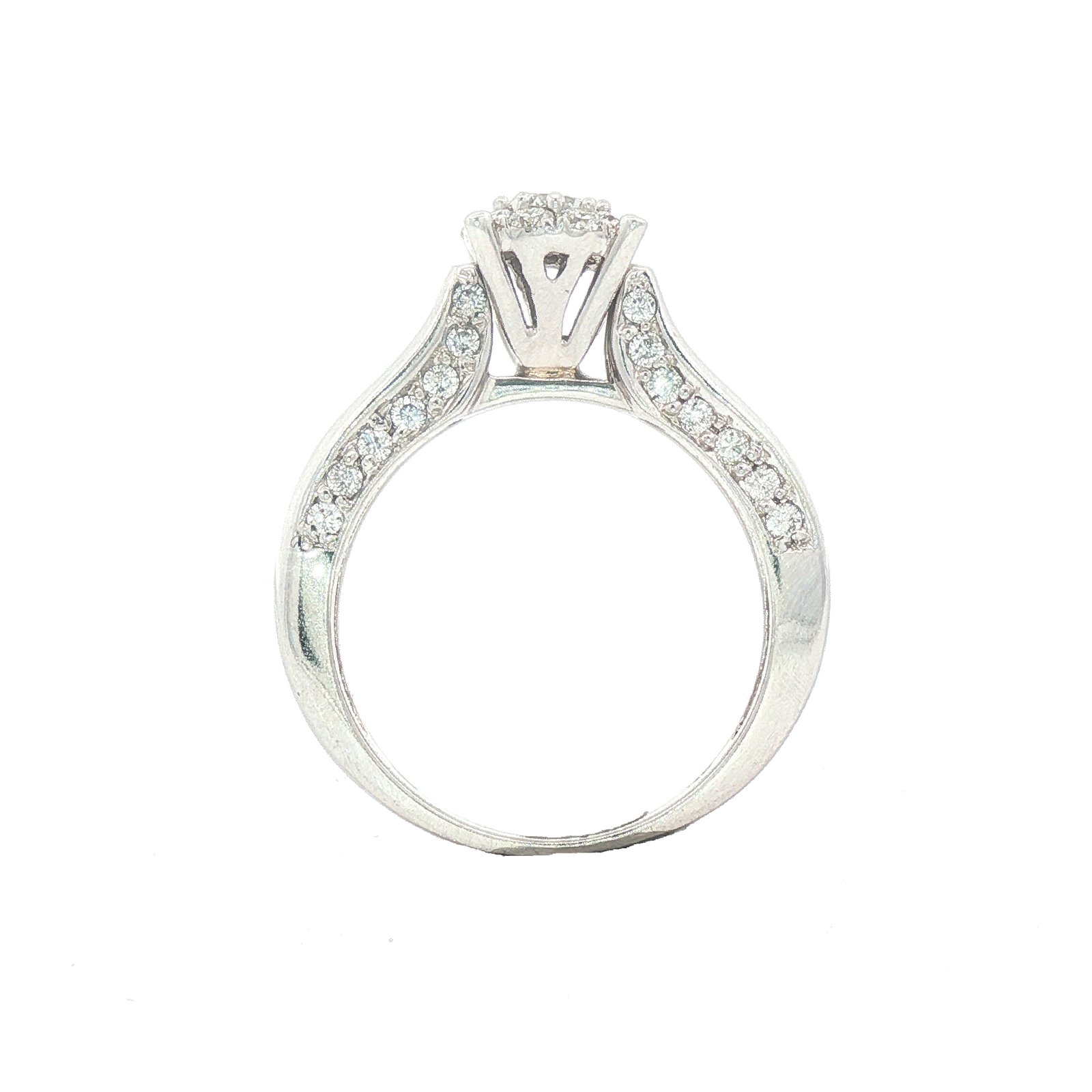 Celebrate your love with this timeless Diamond Solitaire Engagement Ring, exquisitely crafted in luminous white gold. The ring features a stunning round-cut center diamond, securely held in a graceful cathedral-style prong setting that elevates the stone for maximum brilliance. The tapered shank is adorned with a row of sparkling accent diamonds, adding a touch of elegance and enhancing the overall radiance of the piece.