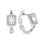 Radiate elegance with these dazzling Emerald-Cut Halo Diamond Hoop Earrings, beautifully crafted in luminous white gold. Each earring features a striking emerald-cut diamond at its center, framed by a halo of brilliant round diamonds that amplify its sparkle and sophistication. The hoops are designed with a chic, modern link-inspired structure, adding a contemporary twist to a timeless silhouette.