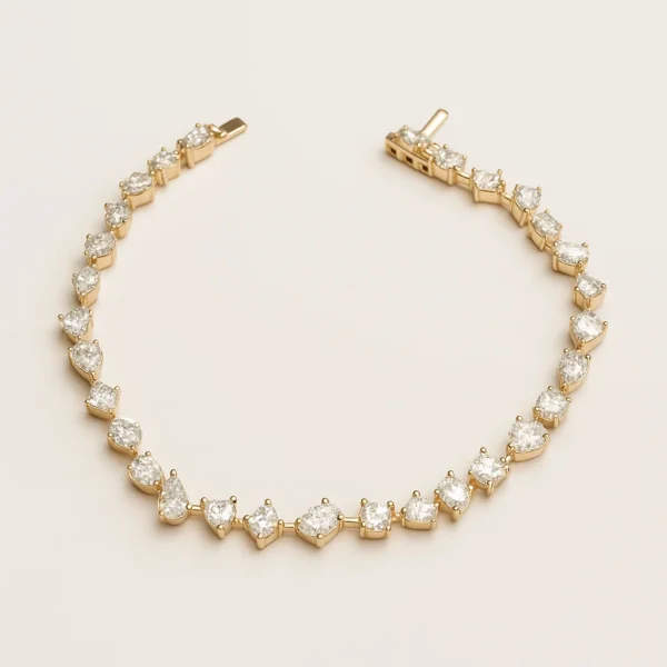 The design celebrates balance bold geometry softened by the fluid grace of its diamond shimmer. Its polished finish and refined clasp ensure comfort and security, making it as wearable as it is dazzling. Whether paired with a sleek evening gown or a crisp white shirt, this bracelet redefines elegance for the modern muse.