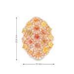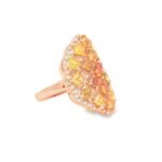 Make an unforgettable statement with this breathtaking Fancy Color Diamond Cluster Cocktail Ring, masterfully crafted in luxurious 14K rose gold. The design features an intricate mosaic of fancy-colored diamonds in radiant shades of orange, yellow, and champagne, arranged in a captivating honeycomb pattern that exudes warmth and brilliance.