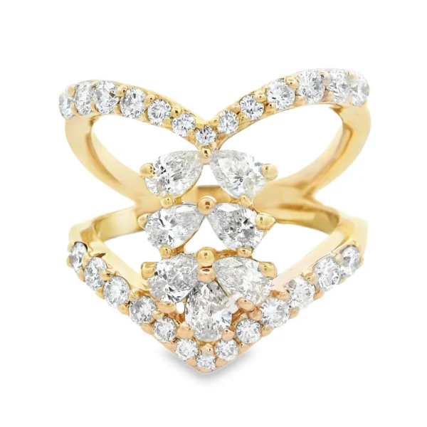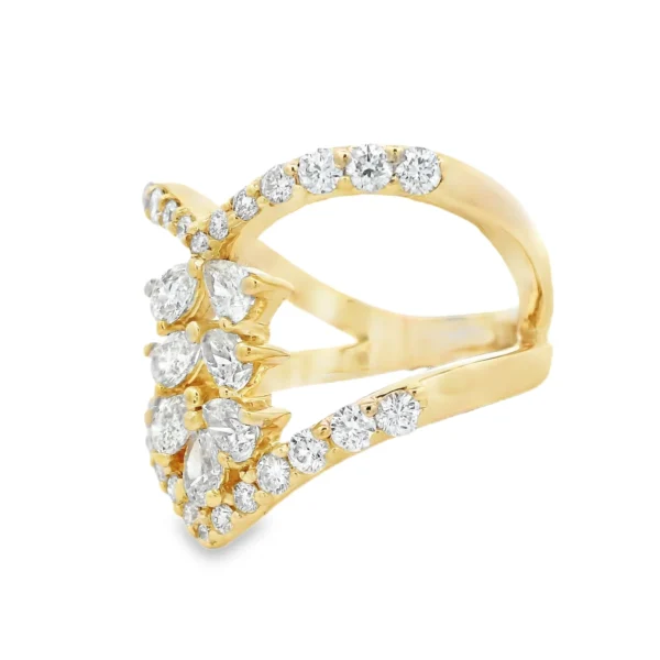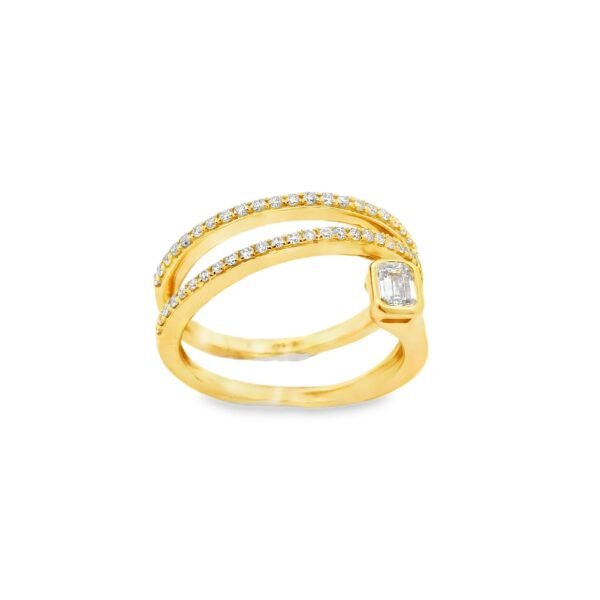 The seamless blend of yellow and white tones creates a timeless and luxurious aesthetic perfect for those who appreciate refined elegance with a vibrant touch. This versatile ring is ideal as a statement band, anniversary ring, or elegant complement to any fine jewelry collection.