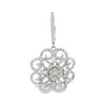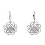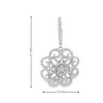 Embrace elegance with these enchanting floral-inspired diamond drop earrings, crafted in luminous 14K white gold. The design features a captivating openwork flower motif, intricately adorned with pavé-set diamonds for a radiant sparkle from every angle. At the heart of each earring lies a shimmering cluster of round-cut diamonds, amplifying brilliance and depth. The diamond-studded hoop seamlessly transitions into the floral drop, adding an extra layer of sophistication and movement.