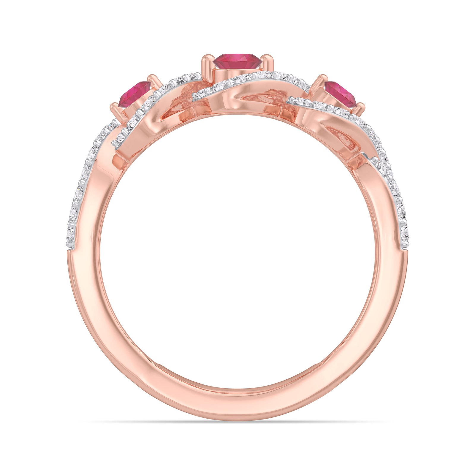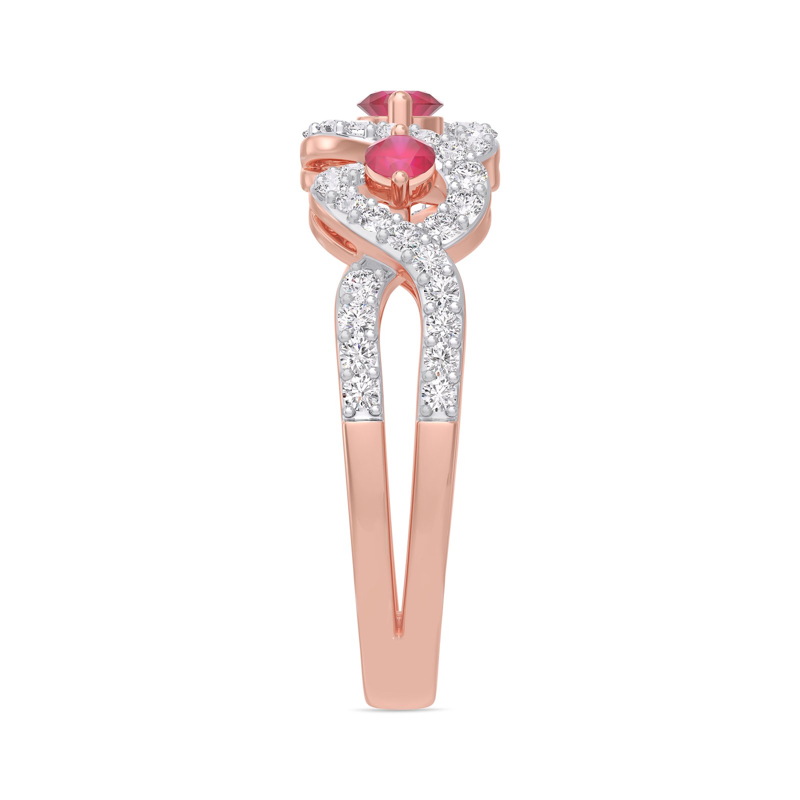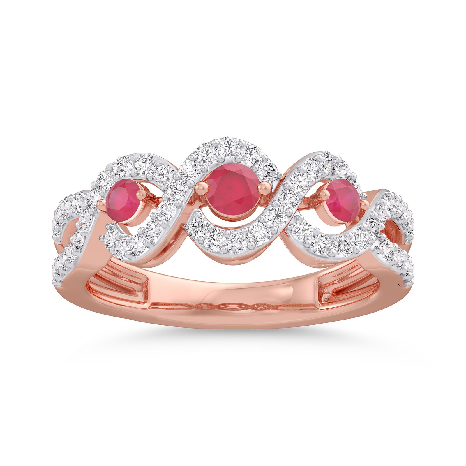 - Gemstones: Round rubies with round brilliant-cut diamond halos