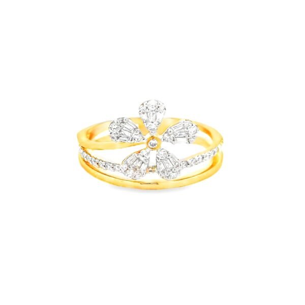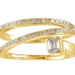- Gemstones: Emerald-cut center diamond and round-cut pavé diamonds