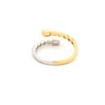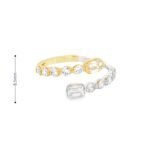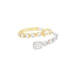 Celebrate modern elegance with the Harmony Twist Two-Tone Diamond Wrap Ring. Exquisitely crafted in a stylish blend of white and yellow gold, this eye-catching design features a graceful open wrap silhouette. Brilliant round-cut diamonds dance along the twisting band, leading to two striking emerald-cut diamonds at each end, creating a beautiful juxtaposition of shapes and sparkle. The two-tone metal adds dimension and contemporary flair, making this ring a perfect statement piece for those who love unique and luxurious jewelry. Ideal for special occasions or elevating everyday style, this ring radiates sophistication from every angle.