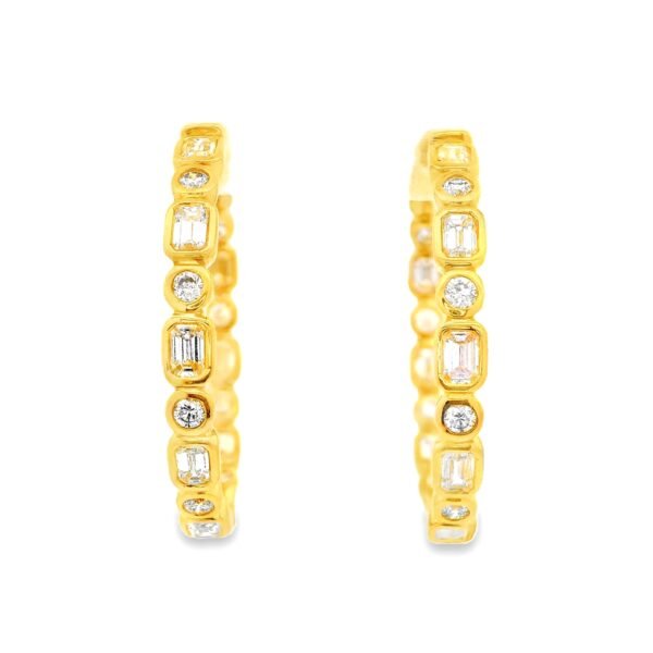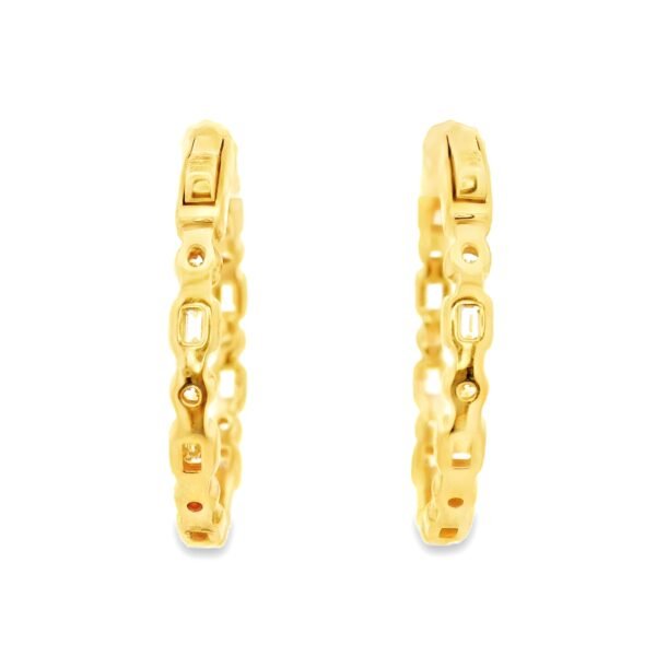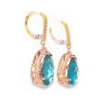 The diamond-accented hoops add an elegant, luxurious finish, allowing graceful movement and light reflection from every angle. The harmonious pairing of warm rose gold and cool blue gemstones creates a modern yet timeless aesthetic perfect for both formal occasions and elegant everyday wear.