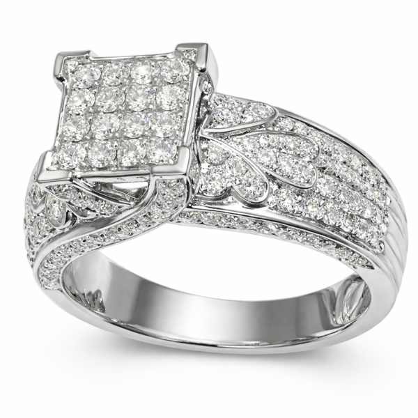 - Multi-row pavé shoulders amplify sparkle and finger coverage