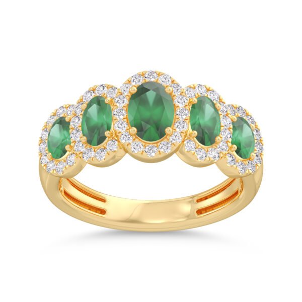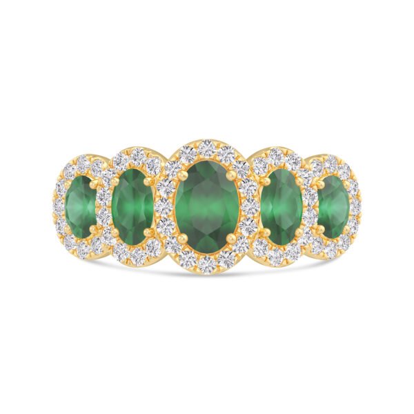 Sleek, sophisticated, and effortlessly timeless, this emerald-cut diamond five-stone band is a refined expression of modern elegance. Crafted in polished white gold, the design features a row of five emerald-cut diamonds, celebrated for their clean lines, step-cut facets, and understated brilliance.