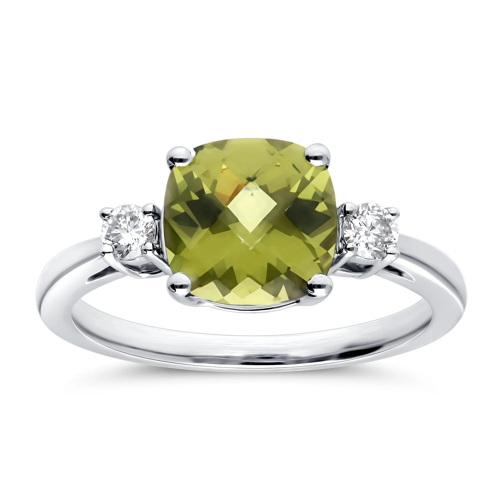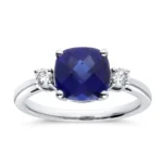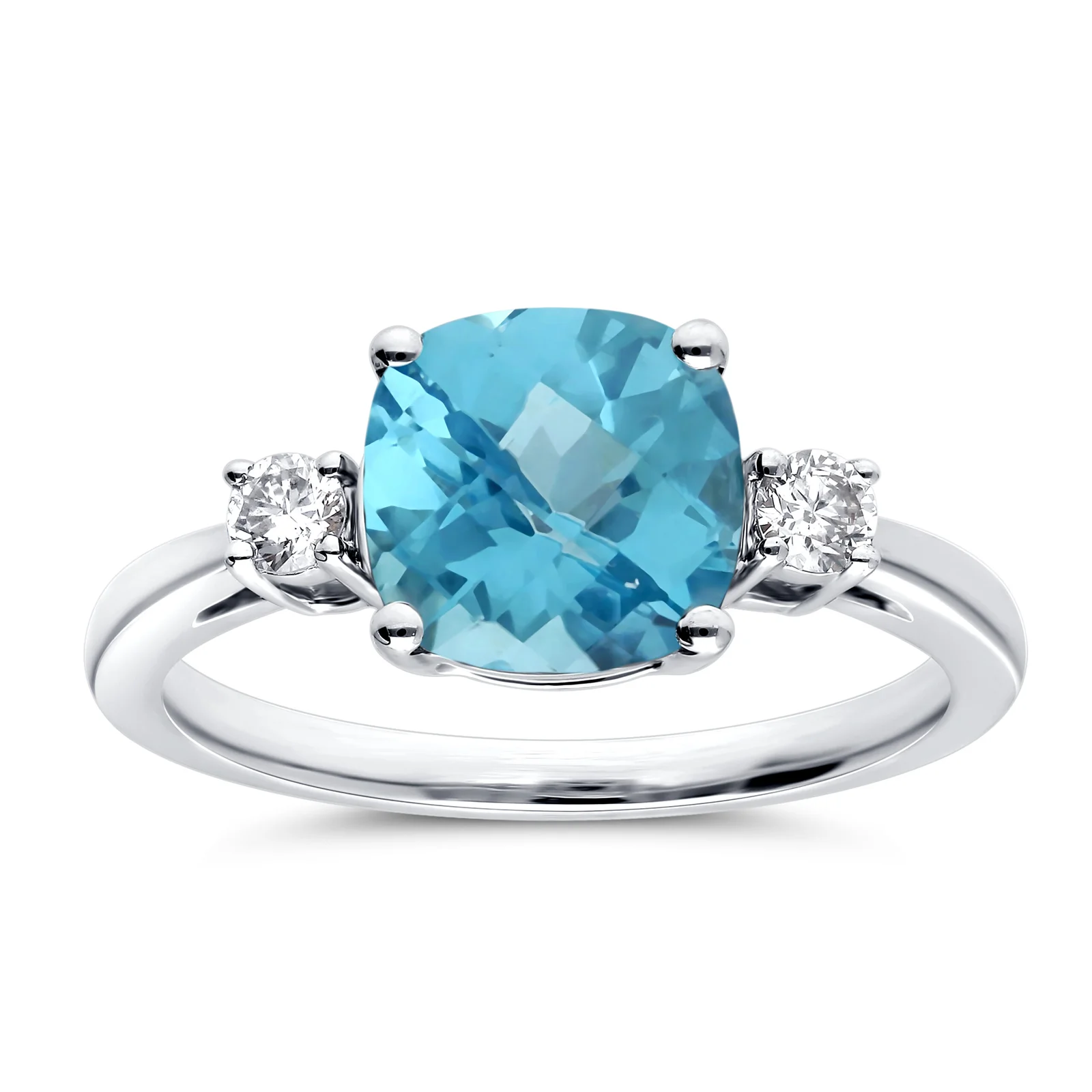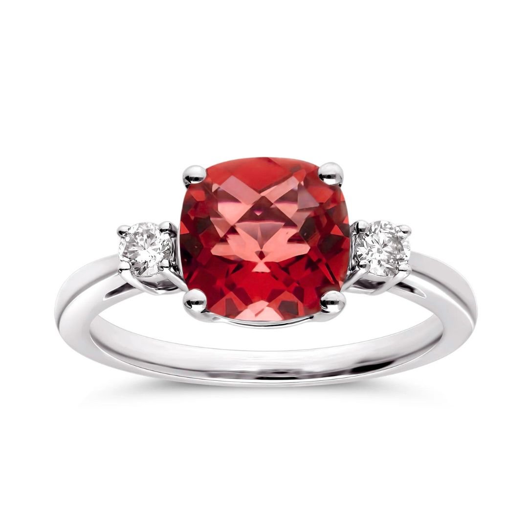 Elevate your jewelry collection with this exquisite three-stone gemstone ring, crafted to symbolize love, balance, and timeless elegance. At its heart lies a dazzling cushion-cut gemstone — available in Amethyst, Blue Topaz, Citrine, Emerald, Garnet, Peridot, Ruby or Blue Sapphire — radiating vibrant color and brilliance. Flanking the center stone are two round brilliant-cut diamonds, perfectly set in a lustrous white gold band for added sparkle and sophistication.