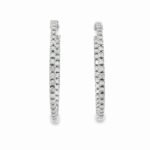 Elevate your elegance with these classic diamond hoop earrings, crafted in luxurious white gold. Each hoop is intricately set with a continuous line of brilliant round-cut diamonds, ensuring sparkle from every angle. The slim yet impactful design strikes the perfect balance between sophistication and everyday wearability, making them versatile for both casual outings and formal occasions.