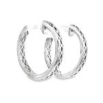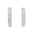 Make a bold and glamorous statement with these triple-row diamond hoop earrings. Expertly crafted in white gold, the design showcases alternating baguette-cut and round brilliant diamonds set in three parallel rows, creating exceptional brilliance and dimension. The sleek hoop silhouette is both classic and contemporary, offering versatility for day-to-night elegance. Ideal for those who love luxurious sparkle with refined craftsmanship, these earrings are an unforgettable addition to any fine jewelry collection.