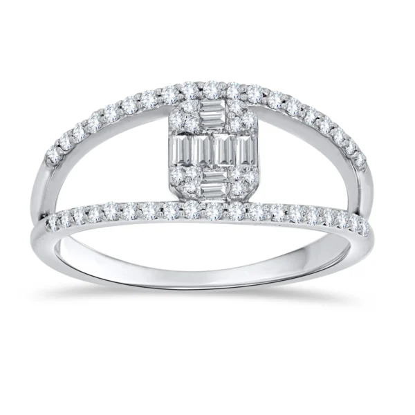 - Gemstones: Baguette-cut and round brilliant-cut diamonds