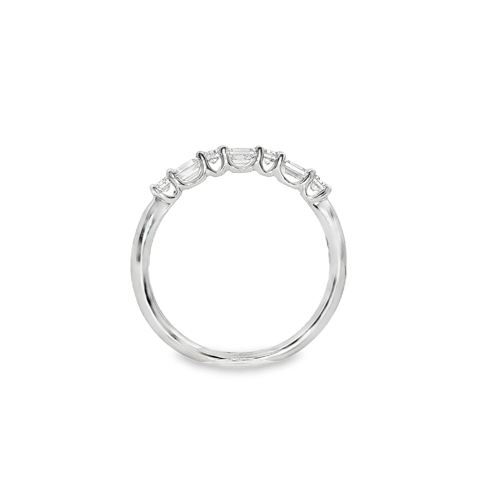 Elevate your everyday elegance with this Platinum Diamond Baguette & Round Cut Band. Expertly crafted in lustrous platinum, this ring features a harmonious blend of round brilliant and baguette-cut diamonds, delicately set across the band to create a refined sparkle. The slim, sophisticated design makes it perfect for stacking, pairing with an engagement ring, or wearing alone as a timeless statement of grace. A versatile piece, it is ideal for anniversaries, weddings, or as a meaningful gift to celebrate life’s special milestones.
